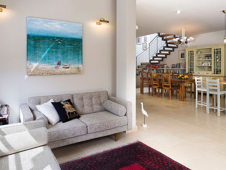 שיפוץ מהיסוד והרחבת בית פרטי עם שני כיווני אוויר. המטרה היתה להכניס לבית שפע של אור טבעי, להוסיף סוויטת ילדים וליצור מרחבים בשאר החללים בבית. רצפת האבן, גרם מדרגות מפורזל, פרקט עץ וגוונים של זית משולבים בגווני לבן תורמים לאווירת הרוגע והבטחון. בית שהוא הרמוניה.